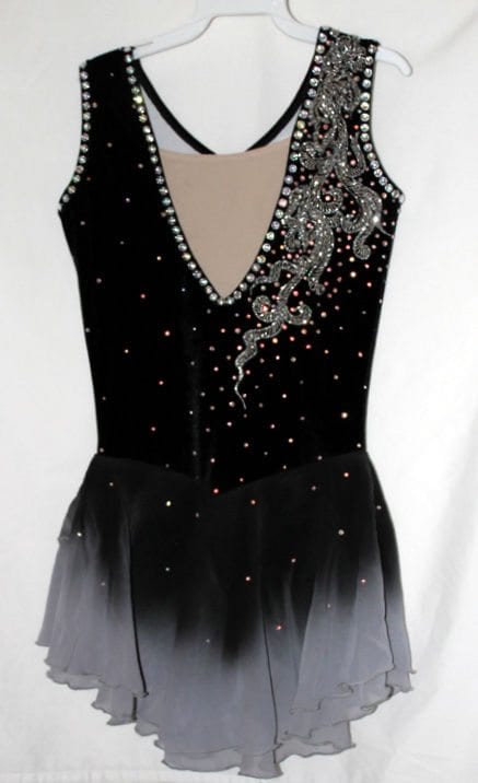 with stunning bead work, lots of gems and chiffon skirt that fades from black to silver-grey